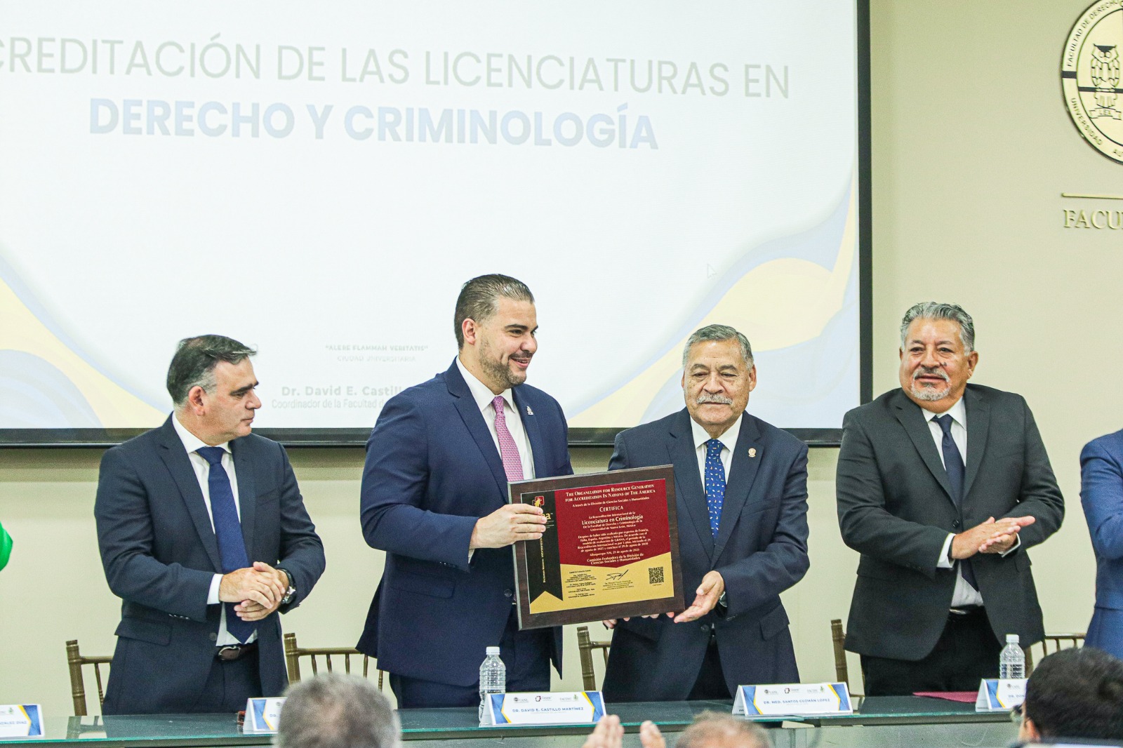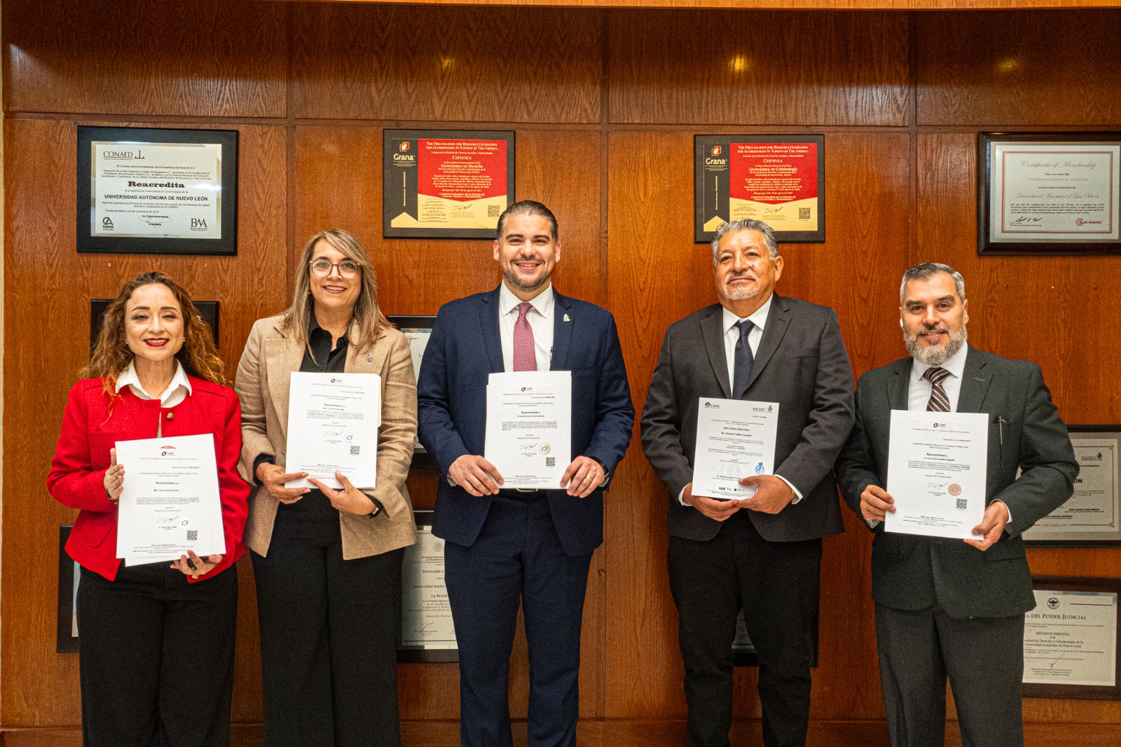 La Facultad de Derecho y Criminología de la Universidad Autónoma de Nuevo León recibió la Acreditación Internacional a la Calidad Educativa otorgada por el organismo Generation of Resources for Accreditation in Nations of the America (GRANA), en reconocimiento a la excelencia y pertinencia de sus programas de Licenciatura en Derecho y Licenciatura en Criminología.